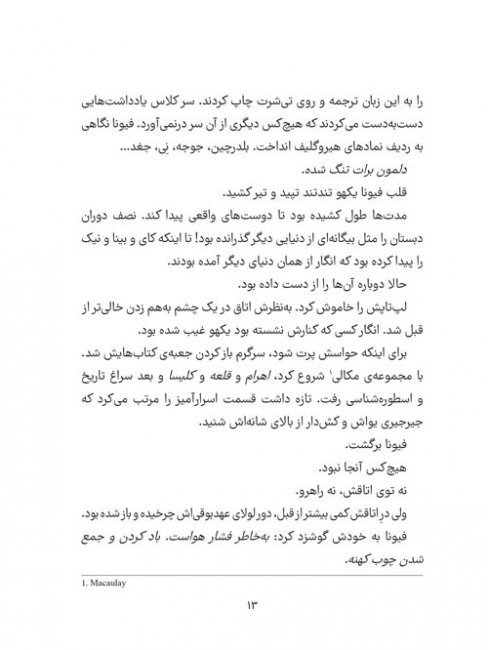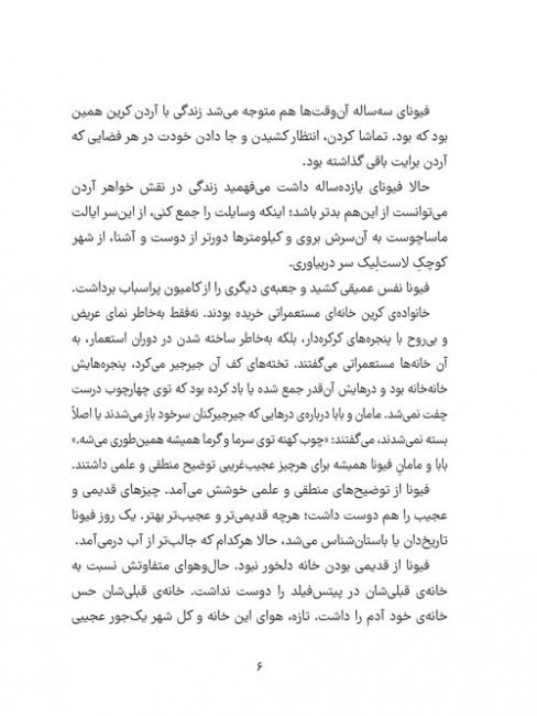 من عاشق داستانهای تودرتو هستم. طرح و فضای این داستان واقعا فوقالعاده است. وقتی فیونا کوچولوی تنها، یک نسخه کتاب قدیمی را پیدا میکند و آن را میخواند، ما وارد داستان دیگری میشویم که من کاملا جذب آن داستان شدم و دوست داشتم داستان آن کتاب اصلا تمام نشود. فقط یک نسخه از این کتاب را از کتابخانه یا کتابفروشی در دست بگیرد. جلد کتاب خود شما را به آن جذب میکند.