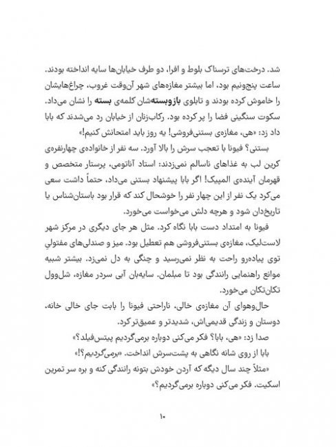 بوکلیست (Booklist): فیونا اصلا نمیخواهد که جابهجا بشود. ... وقتی فیونا خطر میکند و به کتابخانه میرود، آنجا در قسمتی رازآلود، یک کتاب عجیبغریب با جلد چرم پیدا میکند که سرشار از رمزوراز است، ناگهان ناپدید میشود و انتهایی ندارد. همانطور که فیونا سعی میکند پایان حقیقتی داستان را پیدا کند، درگیر ماجراها و افسانههای وحشتناک شهر میشود و بهعنوان یک خواهر با نیازها و اشتباههای خود روبرو میشود. این کتاب برای کسانی که از داستان و فضاهای پررمزوراز خوششان میآید انتخاب فوقالعادهای است.