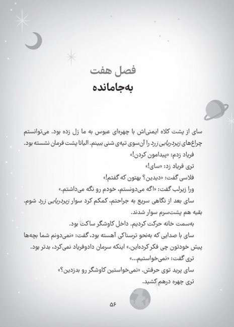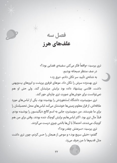 چند فصل از کتاب گذشت تا توانستم با این کتاب ارتباط برقرار کنم، ولی در کل کتاب خیلی خوبیست و پسر 9 سالهام خیلی آن را دوست دارد: شخصیتهایی که در آینده و در مریخ زندگی میکنند. از آن دست کتابهاست که حال آدم را خوب میکند چون موضوع آن ساخت روابط ارزشمند است.
