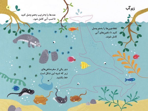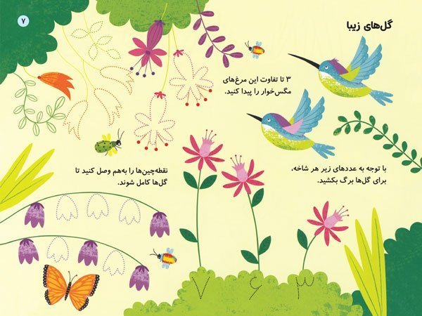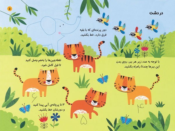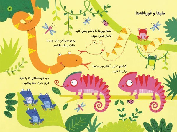 کودکان با این تمرینها ساعتها سرگرم میشوند و به دنیاهای مختلف میروند، به حیوانات باغوحش و جنگل سر میزنند و به سرزمین دایناسورها و تکشاخهای خیالی سفر میکنند. تازه کلی هم چیزمیز یاد میگیرند: اعداد و نقطهچینی، نقاشی و رنگآمیزی.