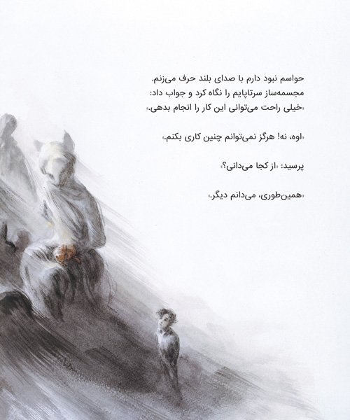 اسکول لایبری ژورنال (School Libraray Journal): مجسمهسازی در کارگاهش مجسمههای بزرگ و زیبا کار میکند. کودک که این صحنه را میبیند، به فکر فرو میرود و آرزو میکند کاش میتوانست مجسمههای زیبا بسازد اما جرات این را ندارد که به خودش شانسی بدهد، چون میداند که موفق نمیشود. مجسمهساز او را با جملاتی آشنا، مثل «تنها راه برای فهمیدن اینکه میخواهی به کجا بروی، این است که قدمی درآن راه برداری» تشویق میکند. وقتی شک و ترس کودک بیشتر میشود، مجسمهساز با نصیحت و بینشی که دربارهی کار هنری دارد، او را نصیحت میکند و مجسمههای بهثمرنرسیدهی خود را به او نشان میدهد. سخنان مجسمهساز حقایق آشنایی هستند، اما تصویرسازیهای قلم و آبرنگی باعث میشود قصه تاثیر عمیقی روی خواننده بگذارد ... مربیانی که به دنبال کتابی الهامبخش برای بلندخوانی میگردند، قطعا از این کتاب که شبیه کتابهای کلاسیک است، استقبال میکنند. پیام این کتاب شجاعتِ امتحانکردن است.