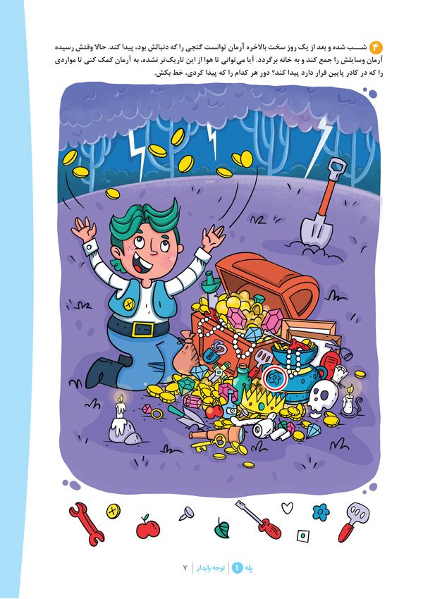 توجه و تمرکز کودکان، برای والدین و مربیانی است که باور دارند ظرفیتهای یادگیری بسیاری در کودکان وجود دارد و سالهای پیش از دبستان و اول دبستان، فرصت مهمی برای تقویت و افزایش این ظرفیتها است. ما در باشگاه مغز توجه و تمرکز کودکان بهدنبال آن هستیم تا با ترکیبی از تمرینات مغزی و داستانهای جذاب و سرگرمکننده، به کودکان یاد بدهیم که چگونه از جنبههای متعدد توجه خود استفاده کرده و تمرینات این مجموعه را حل کنند. این تمرینات بهصورت هدفدار، پلهپله و بهتدریج از آسان به دشوار چیده شدهاند و هر پله کودک را به دنیایی رنگارنگ با چالشهای متنوع دعوت میکند. اگر شما هم مثل ما باور دارید که سن کودکی بهترین سن برای رشد و ارتقای عملکردهای مغزی است، در این مسیر با ما همراه شوید.