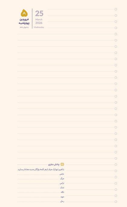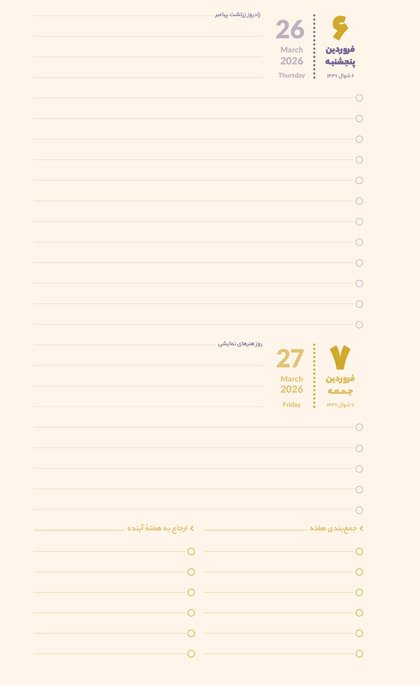برای نوشتن تجربههای هر روزه، چیزهایی که یاد گرفتید و کارهایی که باید انجام دهید نیز فضای کافی هست.