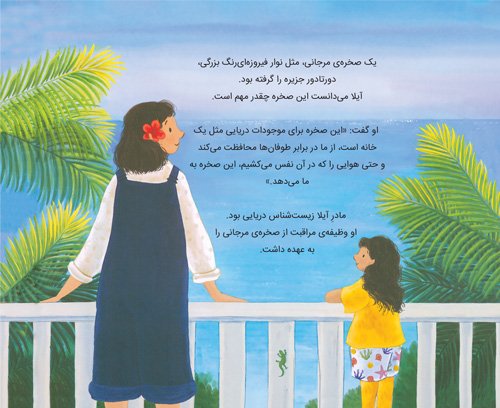 آیلا در یک جزیره ی گرمسیری زیبا زندگی میکند که دورتادورش با صخره های مرجانی احاطه شده است .